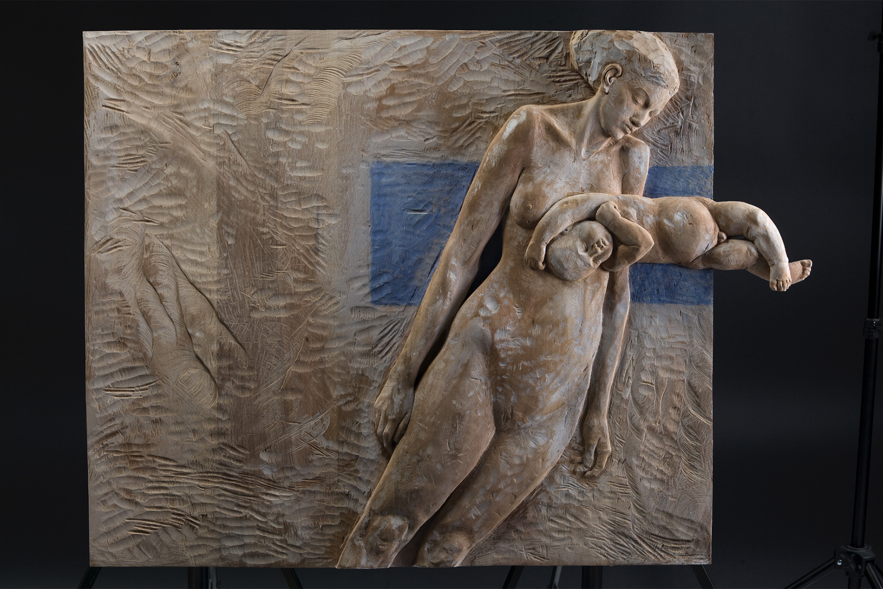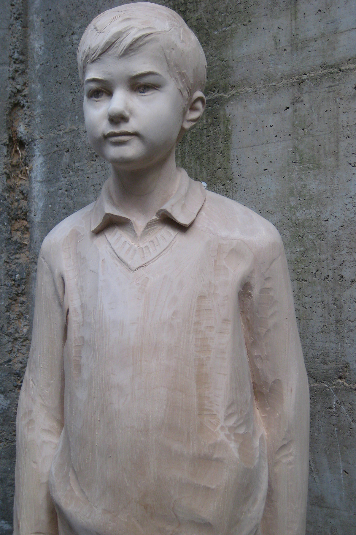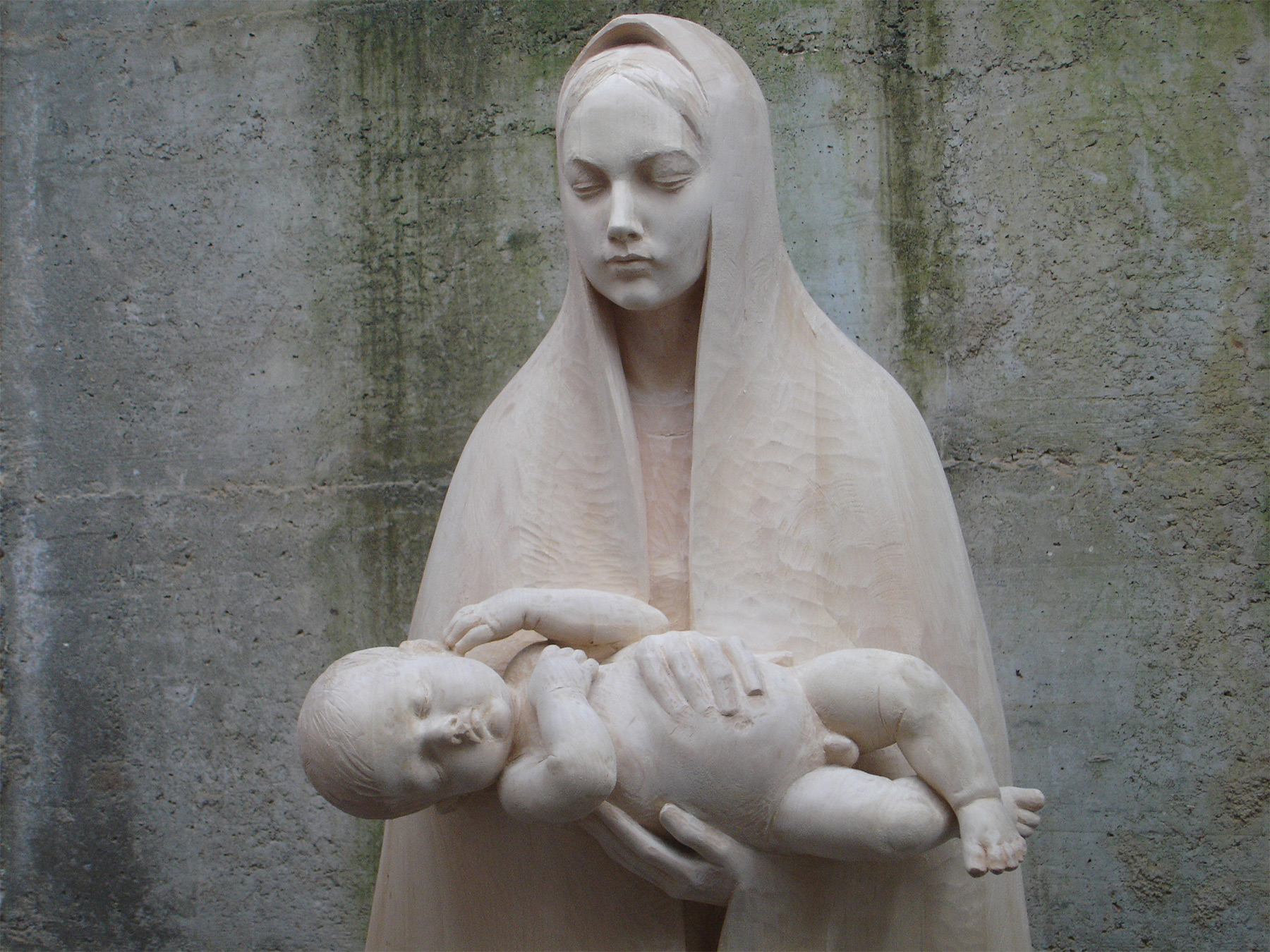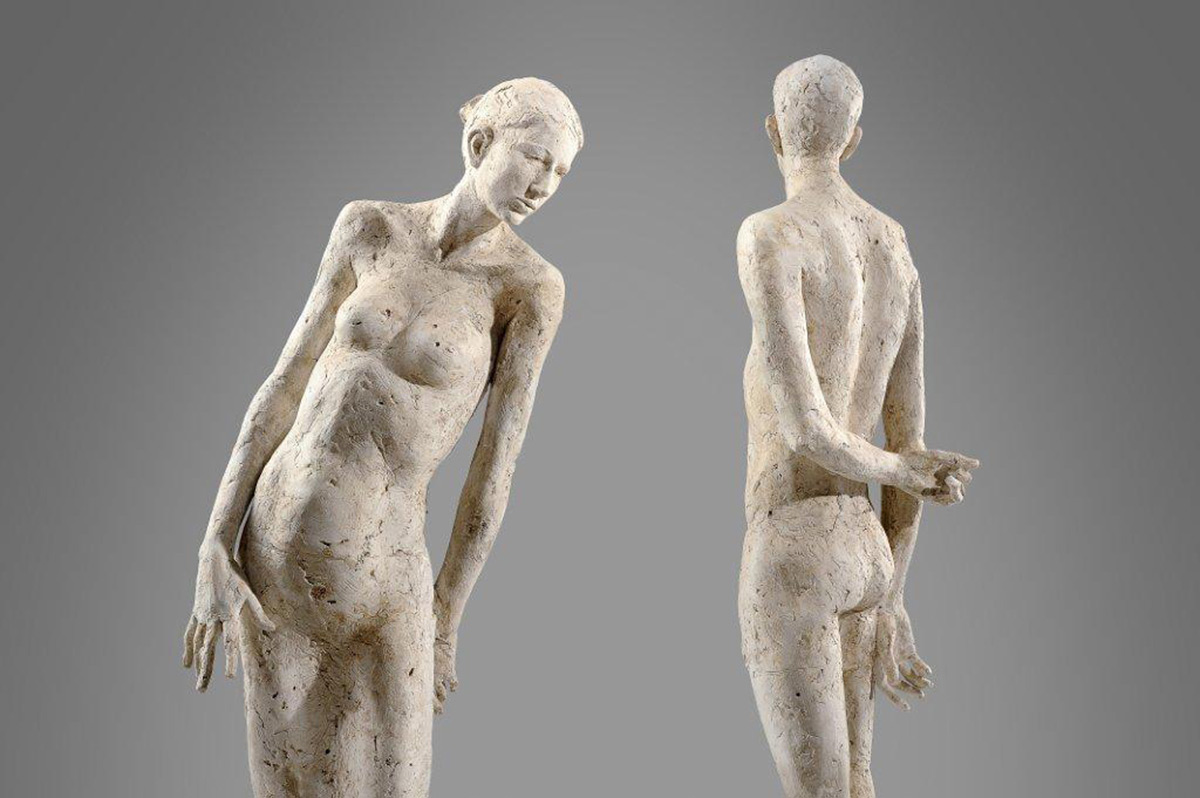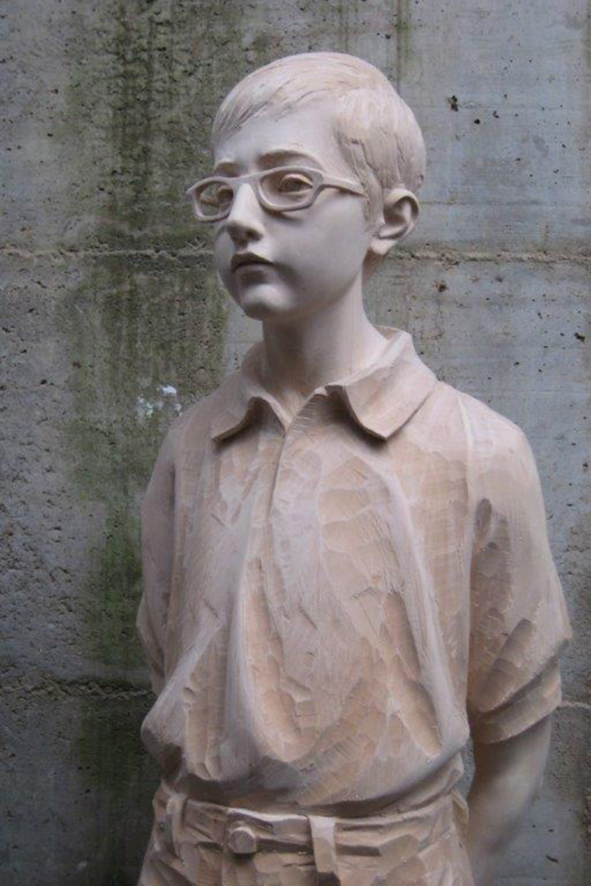 In a similar way as the figure, the artist Hubert Mussner often suggests their placement in an accurately defined space, thereby creating an imaginary atmosphere in which to explore the most intimate feelings and diverse aspects of human expression. The protagonists are in fact men and women, dissolved into wood. Their form is compact and light sculpts the surfaces in a way which enhances the adherence to reality. The figure’s poses result from a few orientations, the vertical and the horizontal, a slight inclination or direction. They open the perception an impressive view. In the balance of the forces of the figures is hidden the extraordinary impetus of life.